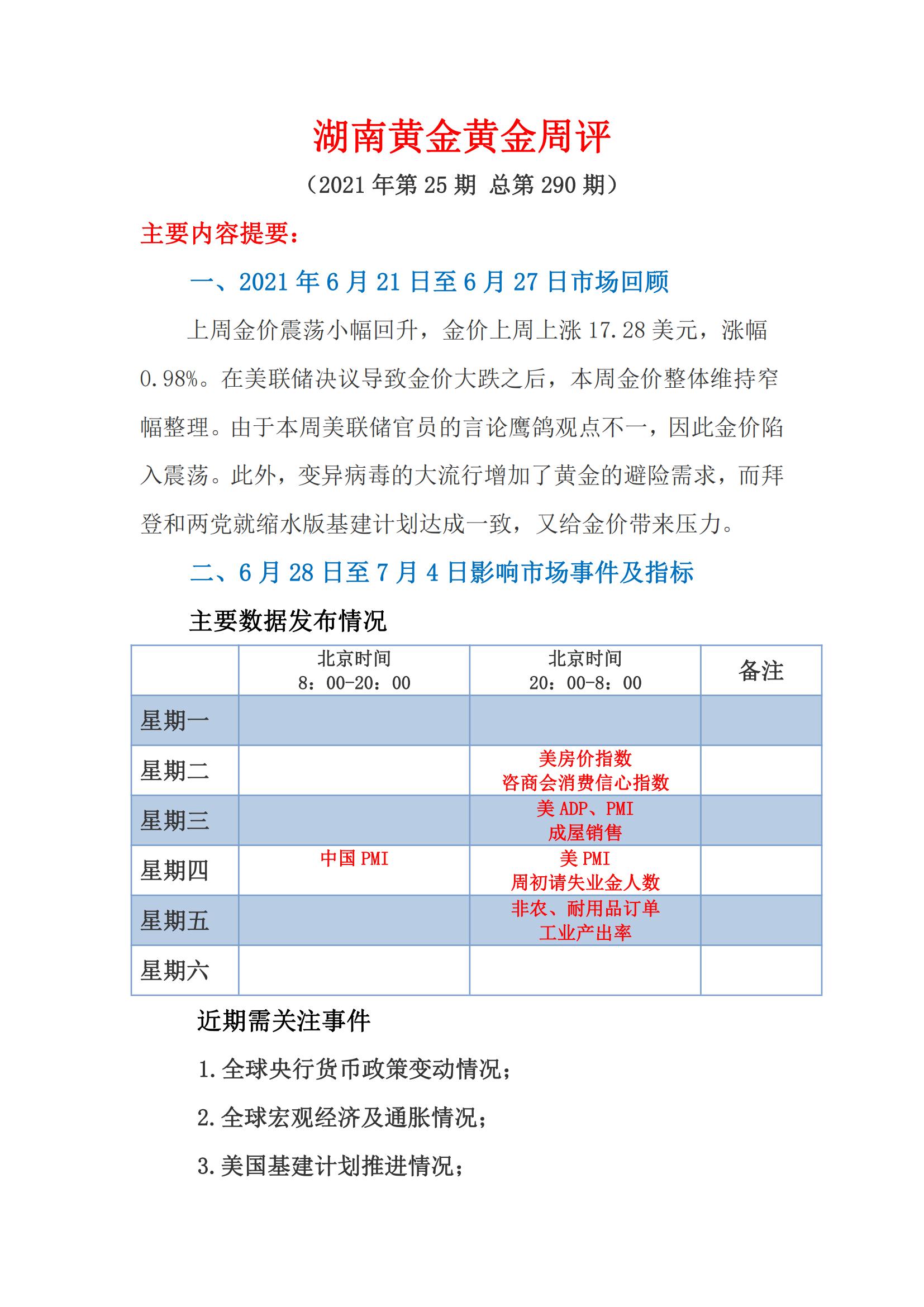 湖南黄金黄金周评(第25期)